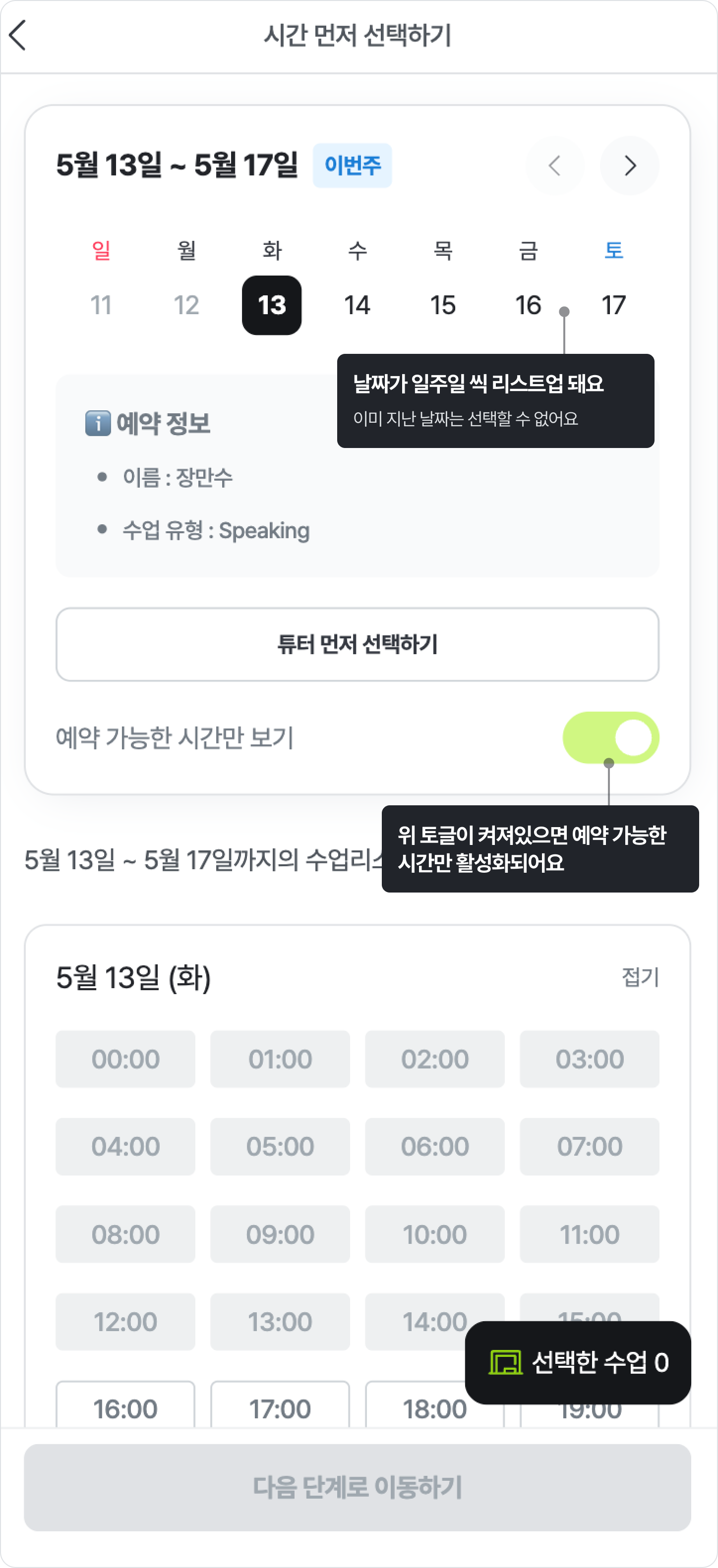 시간 먼저 선택하기